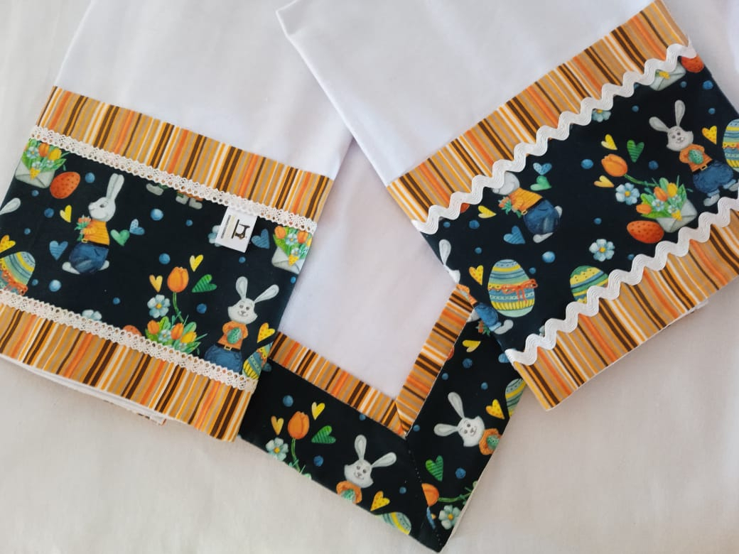 Panos de copa branco com barrado em tricoline digital 100% algodão.
